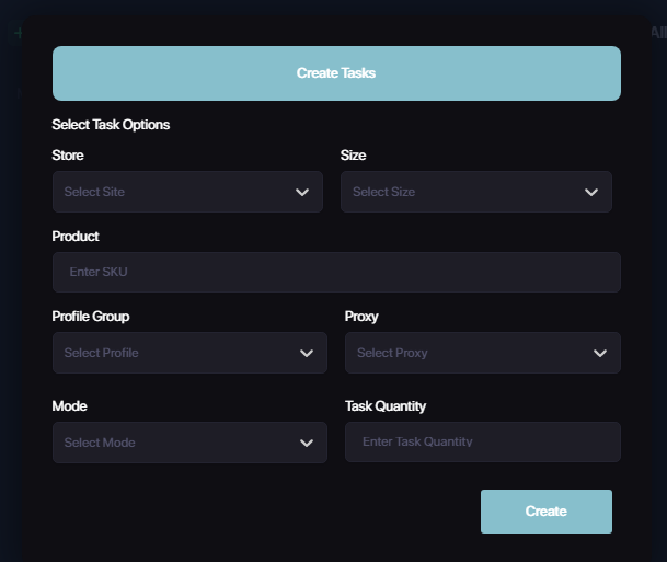 Automations mode - Using this mode you can add custom skus and let us do the monitoring for you. Once your item(s) are in stock our servers will ping your tasks and the checkout flow will begin automatically whether you're sleeping, working, or doing something else. After checkouts or when the item goes OOS the tasks will immediately go back to monitoring and wait for new pings.